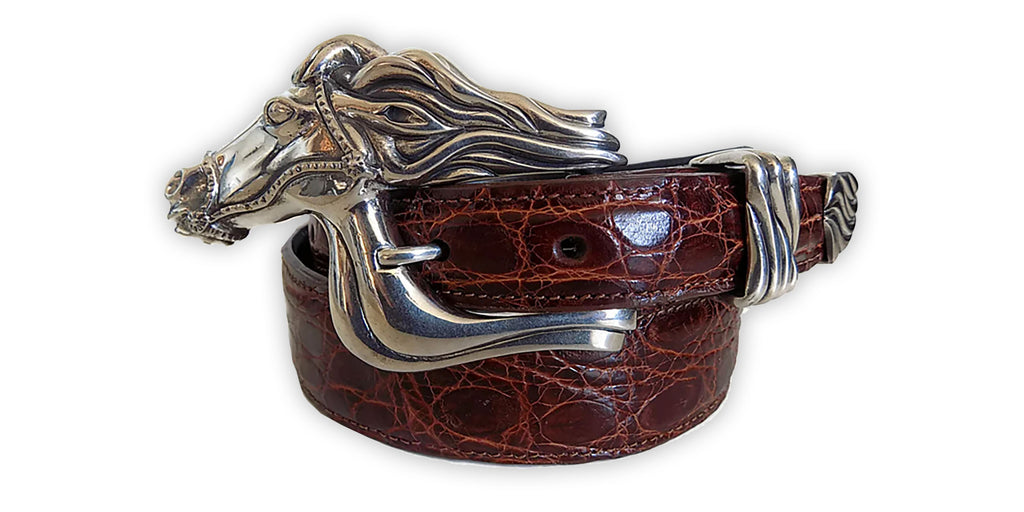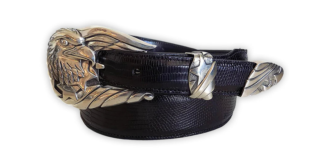 Every piece of the AL BERES Buckle Collection is paired with the world's most exquisite exotic leathers, including glossy American Alligator, Teju Lizard, and sleek Black Italian Milano Leather. It’s a union of the rarest materials, creating an accessory as unique and powerful as the individuals who wear them.